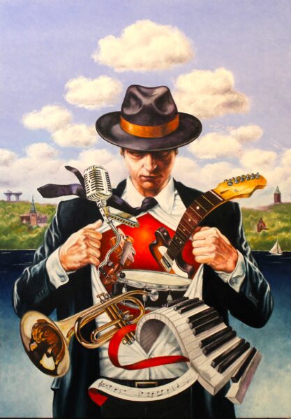 Vi är otroligt stolta och hedrade att få presentera 2026 års Jazzkonstnär Frank Björklund, som faktiskt bor i Ystad! Frank Björklund är Sveriges Dali/Duchamp/Magritte!Hans surrealism kan benämnas ”frankism”. – ” Jag ger mina målningar titlar i form av ordlekar, sentenser och aforismer. Titlarna är ledtrådar in i målningarna, vidare till de inre landskapen. En biljett till en resa och med olika referenser och fantasi resa som förhoppningsvis aldrig tar slut. Urartning, Sambandet, Upptåg, Kon, Förödande, Tillväxt. Om jag förstått mig själv så målar jag aforismer. Om inte, så målar jag ändå.”